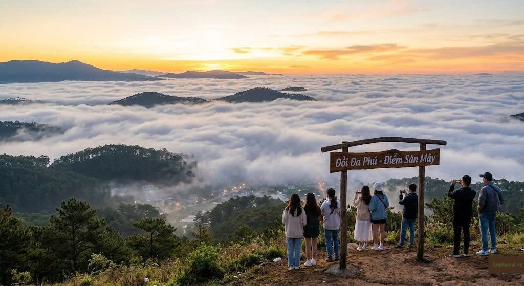 Biển mây tuyệt đẹp vào sáng sớm tại Đồi Đa Phú, Phường 7 - Địa điểm check-in nổi tiếng thu hút giới trẻ