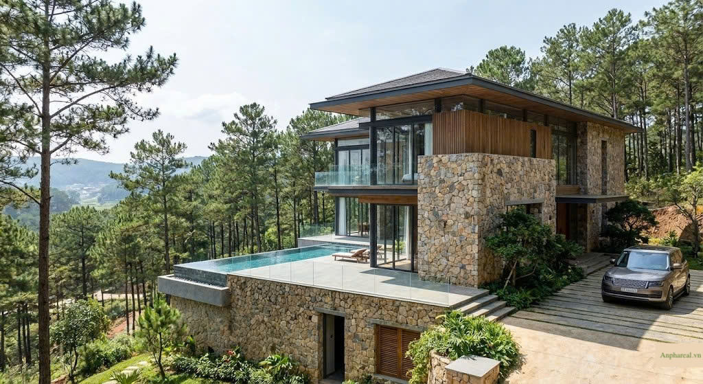Một biệt thự nghỉ dưỡng sang trọng, hiện đại ẩn mình giữa rừng thông tại khu vực Măng Lin, Phường 7